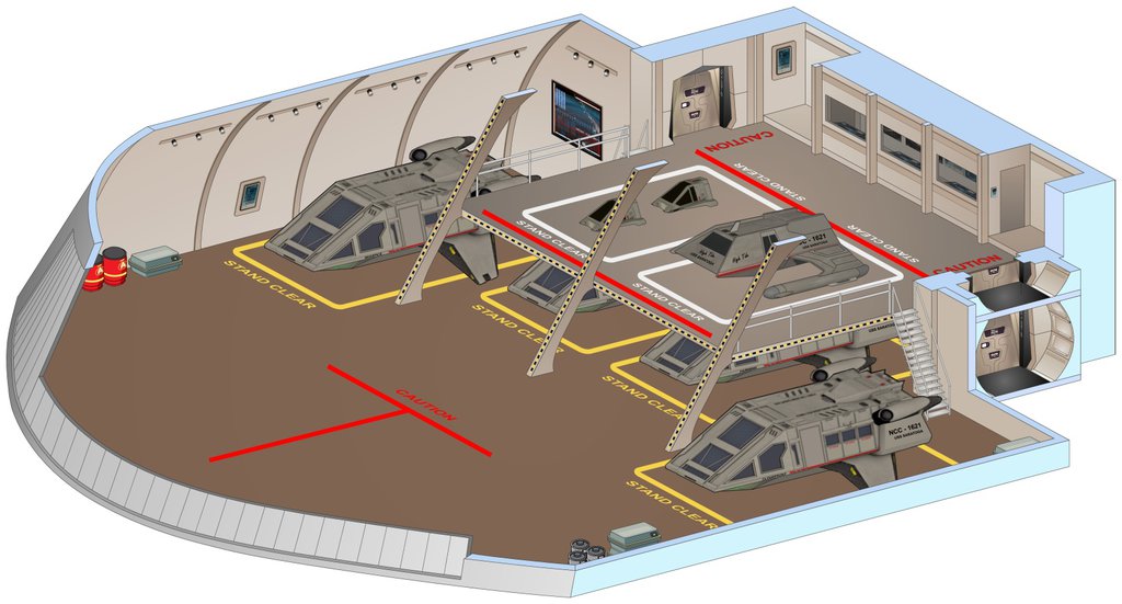 | Description | The Shuttle Bay houses all of the USS Herodotus' auxiliary craft. It is home to 6 Type 9 Shuttles & 2 Type 11 Shuttles. It should be noted that none of these auxiliary craft are capable of temporal travel. |