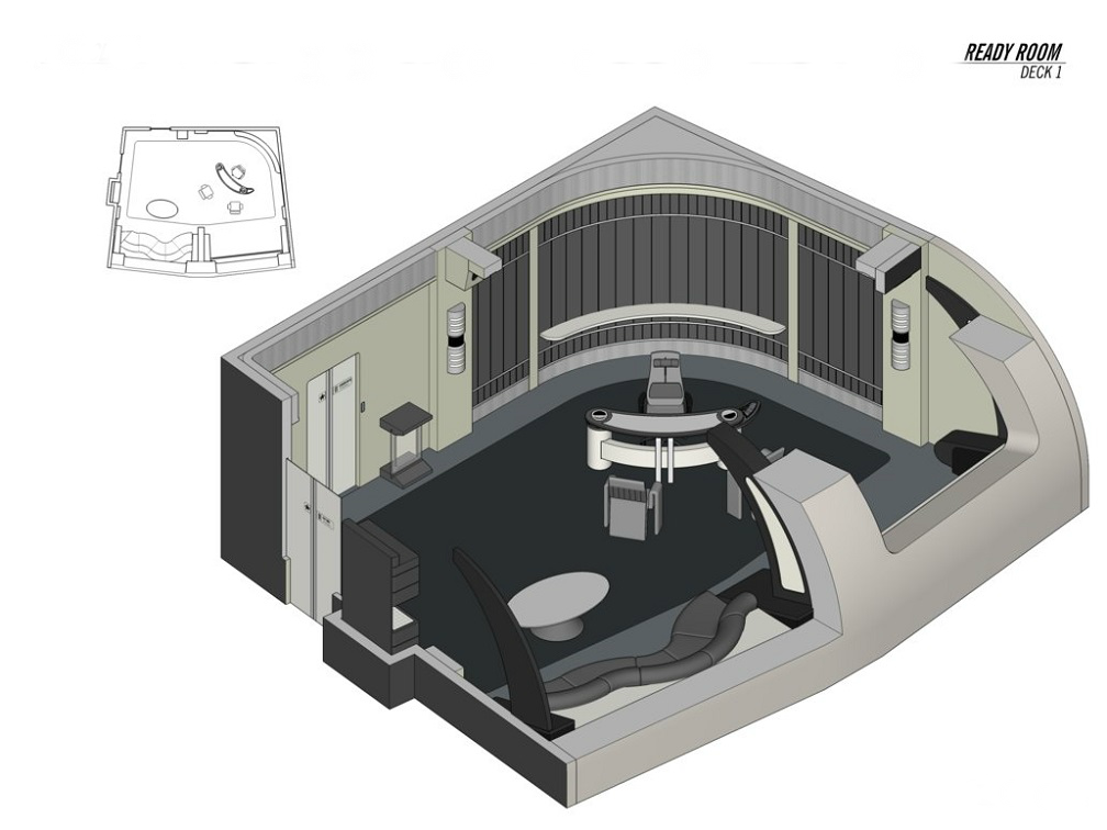 The captain's ready room is a personal office reserved for the commanding officer of a starship and is typically accessed from the bridge.