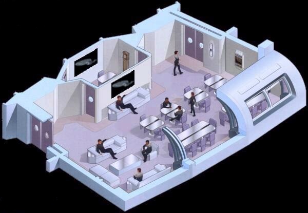 | Description | The area features four replicator stations, various size tables allow parties to dine together, and a lounge area. On most starship's there is a mess hall for officers and one for enlisted. However, due to the compact nature of this vessel all crew members serving aboard the Herodotus share this mess hall. The rear of the mess hall features a private dining area that is outlined to be for the Captain's use only. However, the CO of the Herodotus allows it to be used by all officers should they want privacy while dining. |